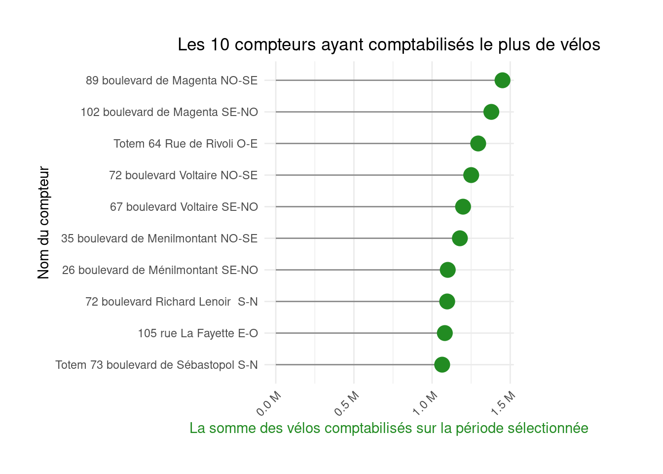 y = "La somme des vélos comptabilisés sur la période sélectionnée") +