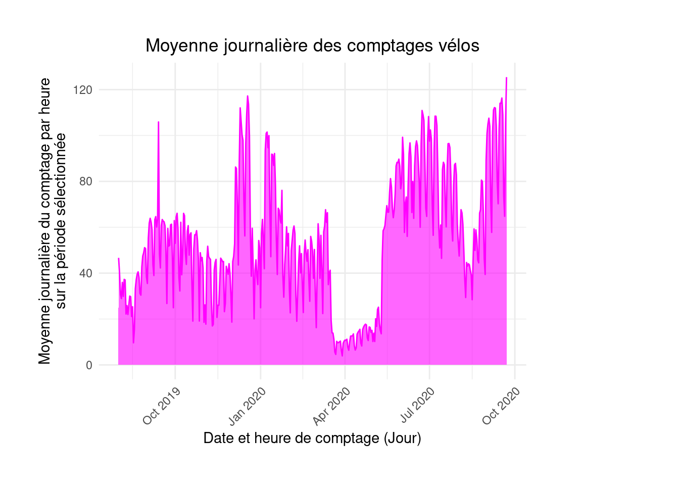 labs(x = "Date et heure de comptage (Jour)", y = "Moyenne journalière du comptage par heure\nsur la période sélectionnée",