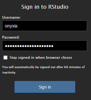 R, RStudio et une ribambelle de packages@ens.fr pour créer un compte sur https://datalab.sspcloud.fr/Vous pouvez adopter le format prenomnom en faisant attention aux règles précédentes. Par exemple, si vous vous appelez Jérôme-Gérard L’Hâltère, votre nom d’utilisateur pourra être jeromegerardlhaltere.